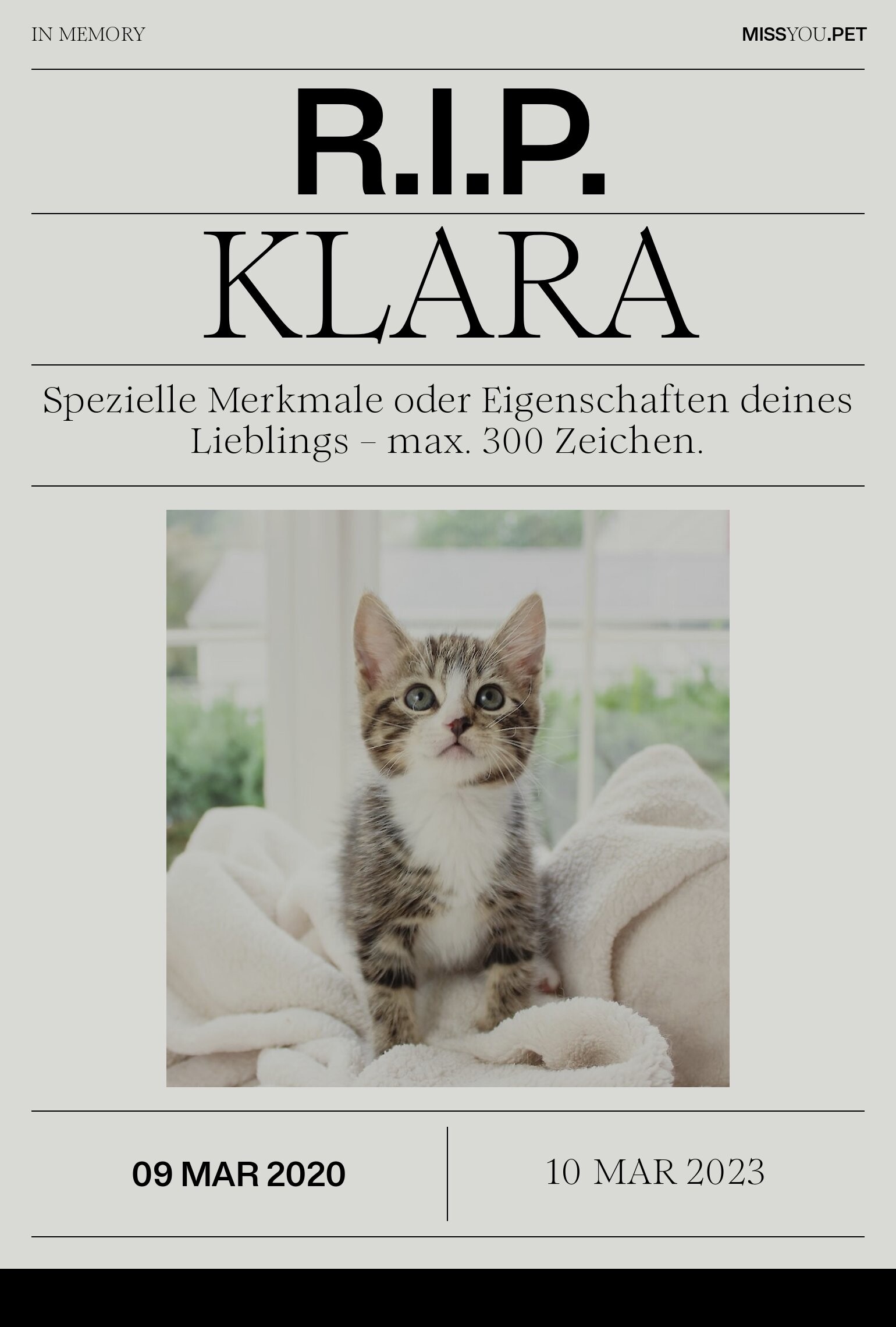 Spezielle Merkmale oder Eigenschaften deines Lieblings – max. 300 Zeichen.