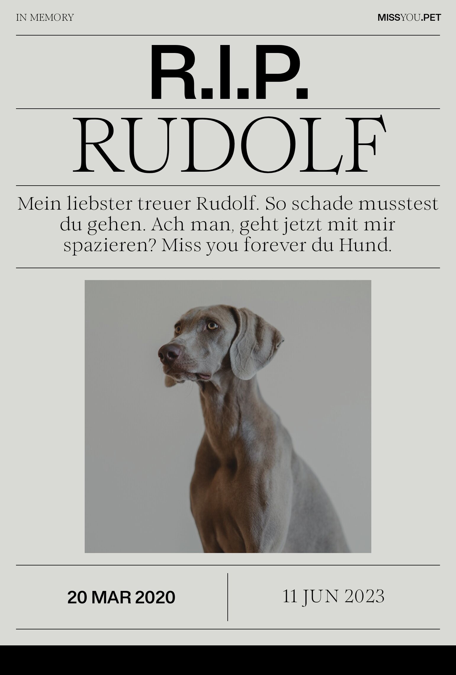 Mein liebster treuer Rudolf. So schade musstest du gehen. Ach man, geht jetzt mit mir spazieren? Miss you forever du Hund.
