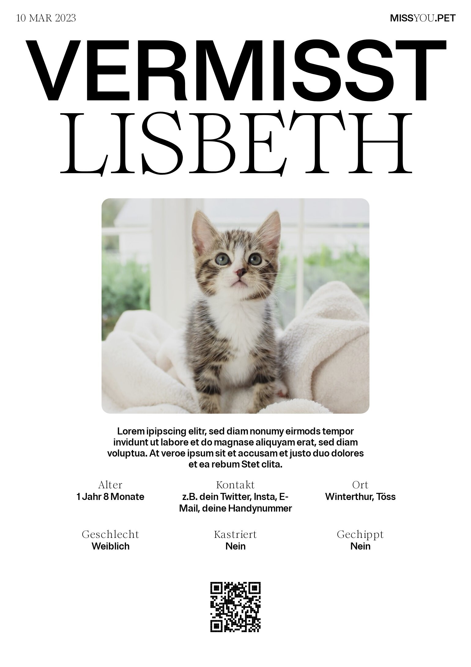 • Kontakt z.B. dein Twitter, Insta, E-Mail, deine Handynummer